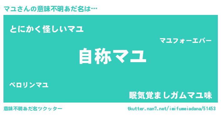 | ヒーロー風カッコイイあだ名 | 『最強戦士マユ』『幻影騎士マユ』 |