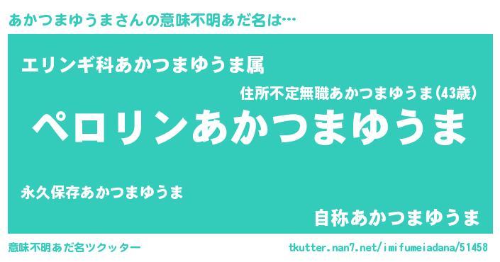 | 欧米人風あだ名 | 『マイケルあかつまゆうま』 |