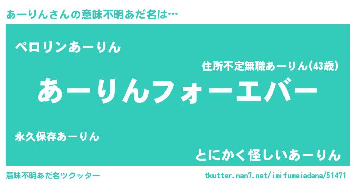 | ヒーロー風カッコイイあだ名 | 『ウルトラあーりんマン』『幻影騎士アー』 |