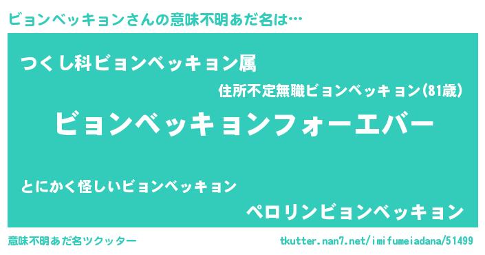 | 女子向けラノベタイトル風あだ名 | 『ビョンベッキョンの雑貨屋さん』 |