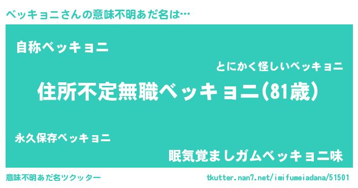 | 男性向けラノベタイトル風あだ名 | 『この素晴らしい世界にベッキョニを!』 |
