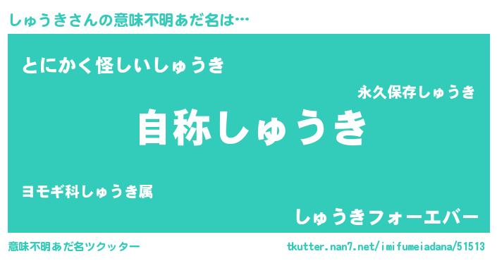 | ヒーロー風カッコイイあだ名 | 『最強戦士シュウキ』『炎刃騎士シュ』 |
