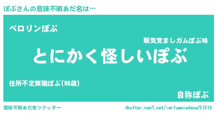 | ヘコむあだ名 | 『ぽぶ太郎』『ぽぶにゅー』『牛乳』 |