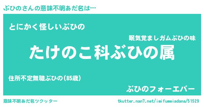 | 料理風あだ名 | 『ぶひのごはん』『栗とぶひののマフィン』 |