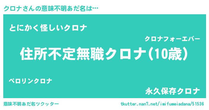 | 胡散臭い通販商品みたいなあだ名 | 『あなたにだけ特別に提供する100年もののヴィンテージワイン…その名も「クロナ」』 |