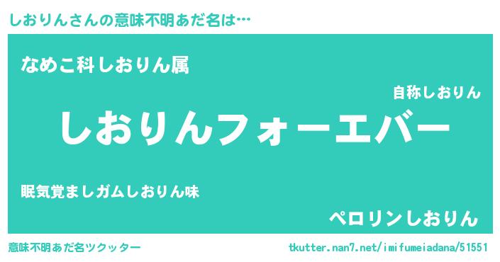 | 胡散臭い通販商品みたいなあだ名 | 『運命の人と巡り会える高級そうな壺…その名も「しおりん」』 |