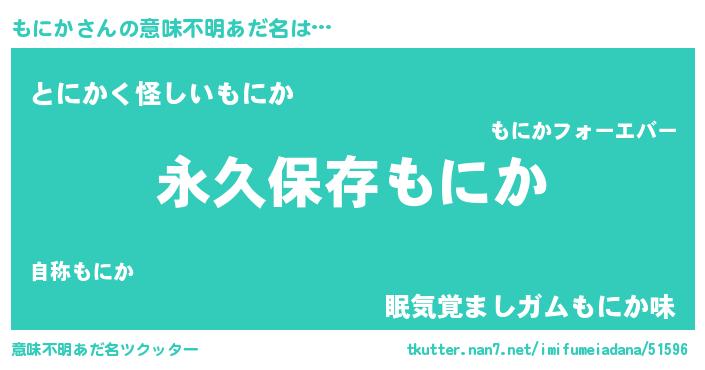 | 男性向けラノベタイトル風あだ名 | 『もにかという概念が存在しない退屈な世界 』 |