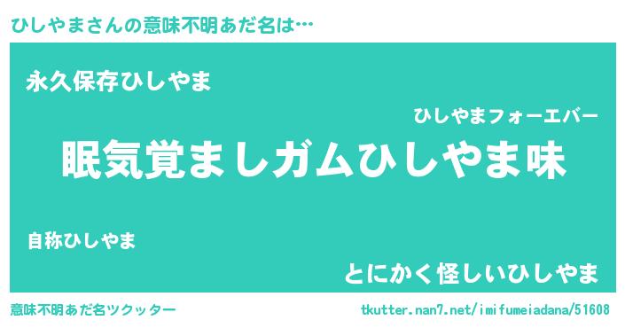 | 男性向けラノベタイトル風あだ名 | 『ノーゲーム・ノーヒシヤマ』 |