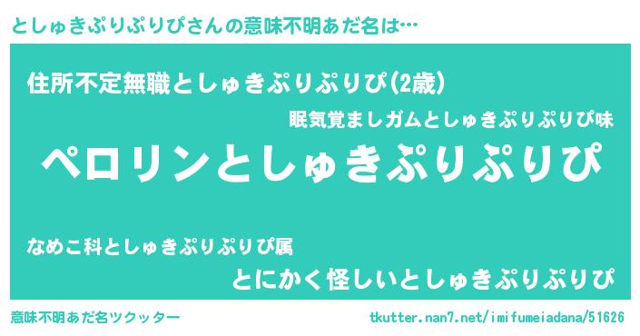 | 男性向けラノベタイトル風あだ名 | 『としゅきぷりぷりぴの憂鬱』 |