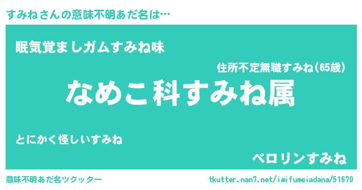 | 男性向けラノベタイトル風あだ名 | 『転生したらすみねだった件』 |
