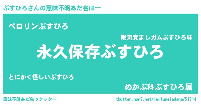 | ヘコむあだ名 | 『ぶすひろ(笑)』『ぶすもー』 |