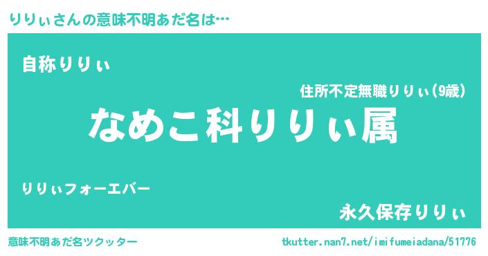 | ヘコむあだ名 | 『りりぃ(笑)』『つくし』『りりを』 |