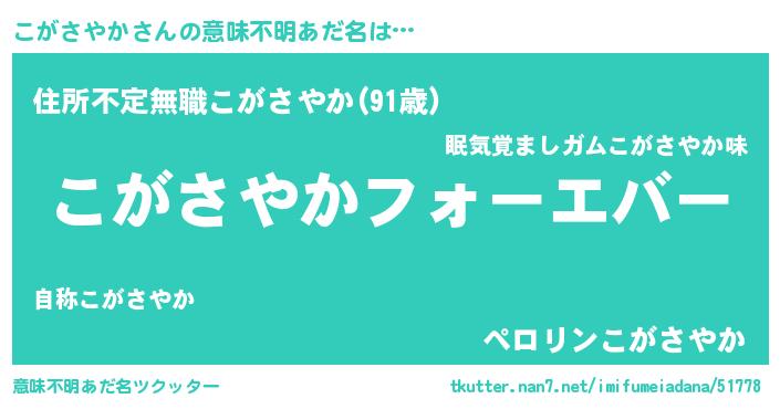 | 欧米人風あだ名 | 『こがさやかクリステル』 |