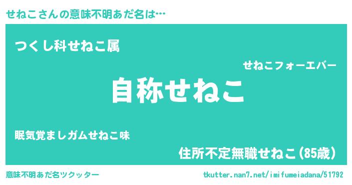 | 女子向けラノベタイトル風あだ名 | 『せねこなんてお断りですっ。』 |
