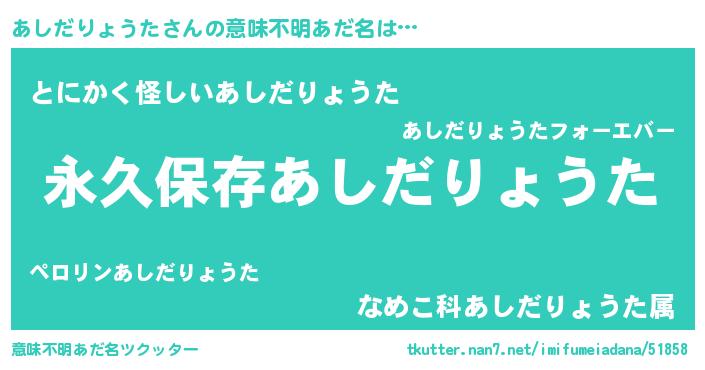| 胡散臭い通販商品みたいなあだ名 | 『前代未聞の水素水…その名も「あしだりょうた」』 |