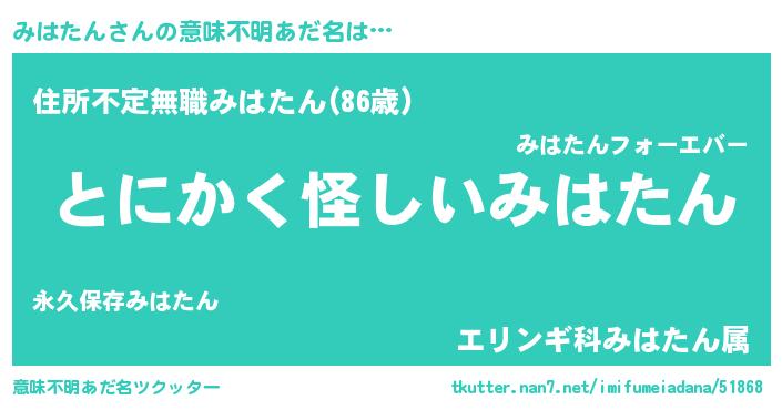 | 女子向けラノベタイトル風あだ名 | 『みはたんの卵を拾いまして』 |