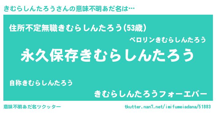 | 男性向けラノベタイトル風あだ名 | 『きむらしんたろうに滅ぼされるだけの簡単なお仕事です』 |