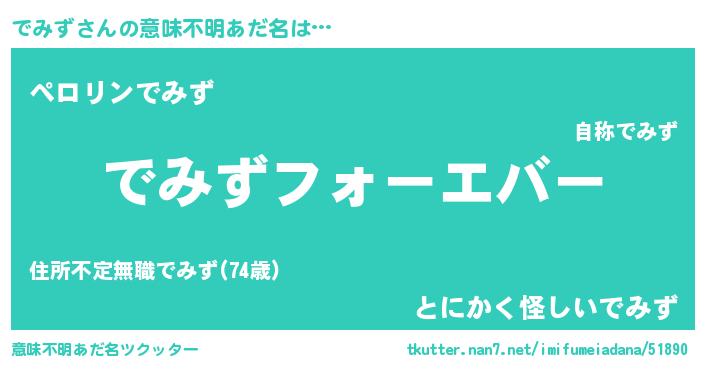 | 女子向けラノベタイトル風あだ名 | 『でみずの雑貨屋さん』『闇のでみず』 |