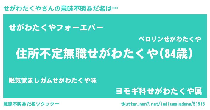 | 男性向けラノベタイトル風あだ名 | 『この素晴らしい世界にせがわたくやを!』 |