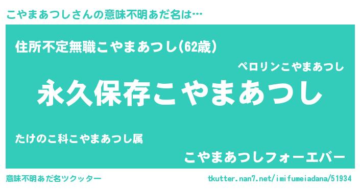 | 伝説のあだ名 | 『古より伝わる吟遊詩人こやまあつし』 |