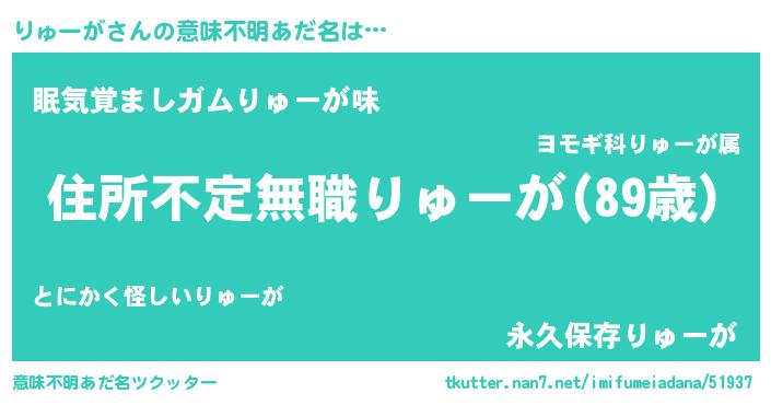 | ヘコむあだ名 | 『りゅーが(遠い目)』『りゅっぺ』 |