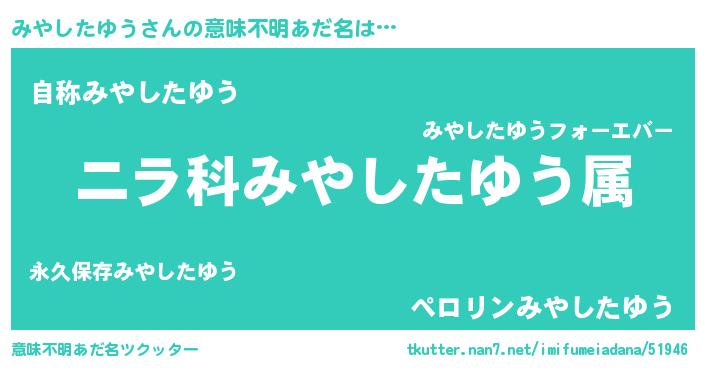| ポケモン風あだ名 | 『ミヤキング』『ミヤセウス』 |