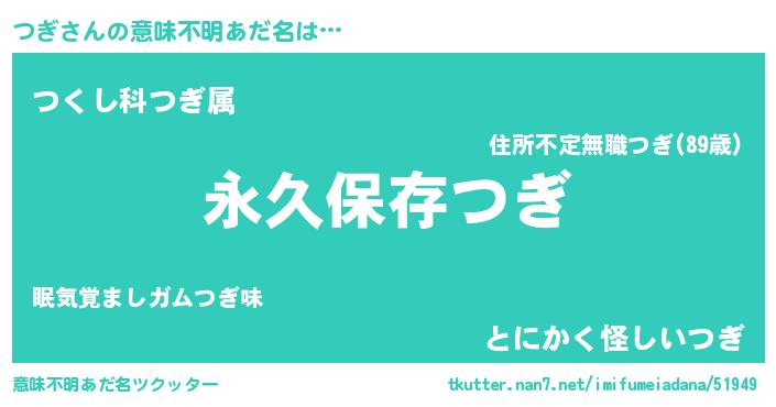 | ヘコむあだ名 | 『つぎ(震え声)』『つぎっぺ』 |