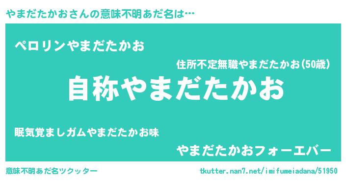 | 男性向けラノベタイトル風あだ名 | 『Re:やまだたかおから始める異世界生活』 |