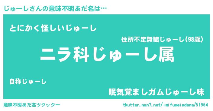 | ポケモン風あだ名 | 『ジュキング』『ヒジューシ』 |
