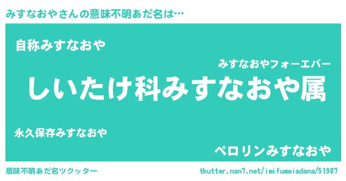 | 料理風あだ名 | 『みすなおやごはん』 |