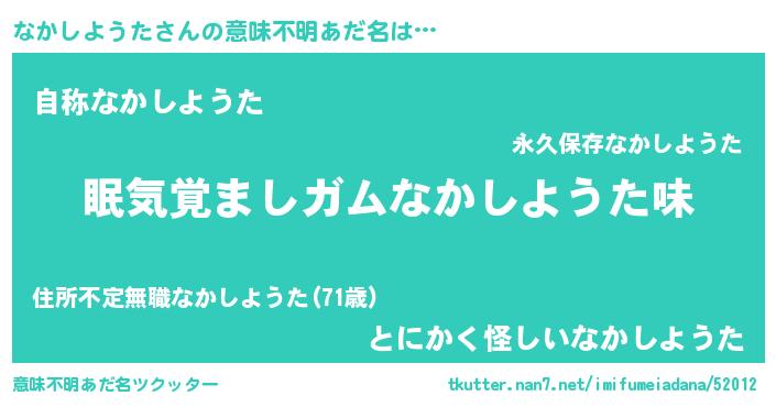 | ヘコむあだ名 | 『なか太郎』『なかしようた(爆)』 |