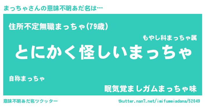 | 男性向けラノベタイトル風あだ名 | 『まっちゃに滅ぼされるだけの簡単なお仕事です』 |