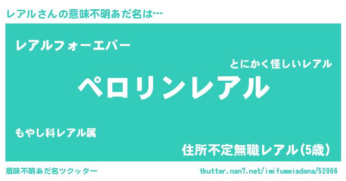 | ヒーロー風カッコイイあだ名 | 『スーパーレアル』『ウルトラレアルマン』 |