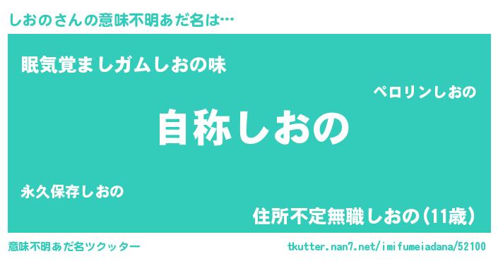 | ヘコむあだ名 | 『しおふぇ~』『しおの(遠い目)』 |