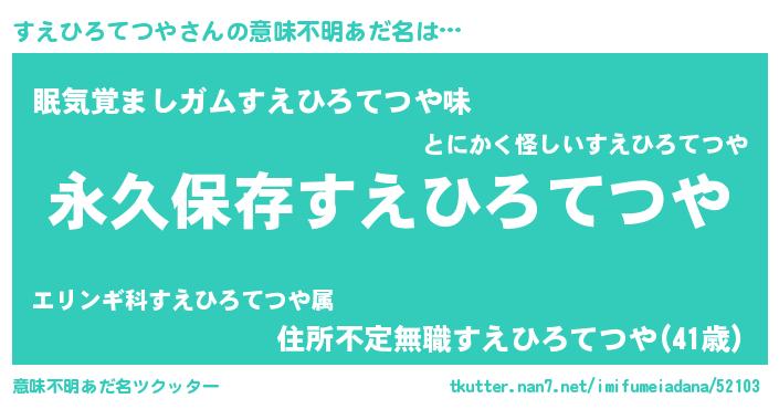 | 男性向けラノベタイトル風あだ名 | 『すえひろてつやという概念が存在しない退屈な世界 』 |