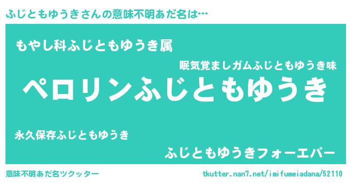 | 男性向けラノベタイトル風あだ名 | 『ふじともゆうきに滅ぼされるだけの簡単なお仕事です』 |