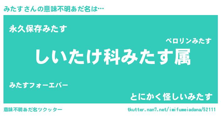 | 男性向けラノベタイトル風あだ名 | 『ミタススレイヤー』『みたすの憂鬱』 |