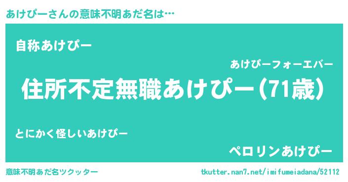 | 男性向けラノベタイトル風あだ名 | 『魔弾の王とあけぴー』『あけぴーの憂鬱』 |