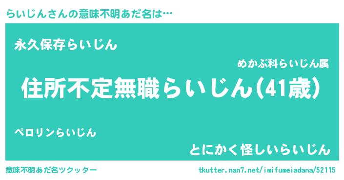 | ヘコむあだ名 | 『らいじん(笑)』『らいぷりん』 |