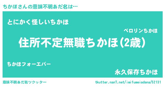 | 男性向けラノベタイトル風あだ名 | 『この素晴らしい世界にちかほを!』 |