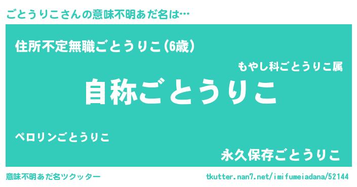 | 男性向けラノベタイトル風あだ名 | 『Re:ごとうりこから始める異世界生活』 |