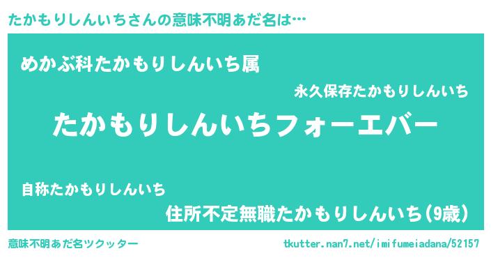 | ファンタジー風あだ名 | 『エターナルタカモリシンイチー』 |
