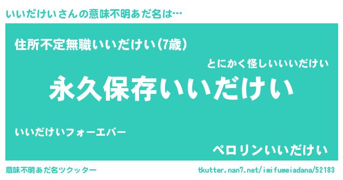 | 男性向けラノベタイトル風あだ名 | 『いいだけいという概念が存在しない退屈な世界 』 |