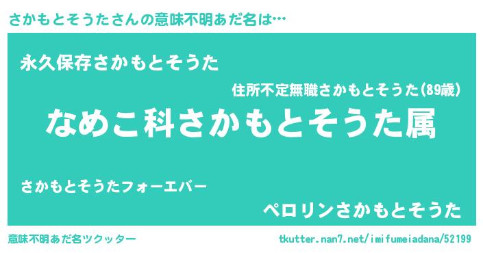 | 男性向けラノベタイトル風あだ名 | 『転生したらさかもとそうただった件』 |