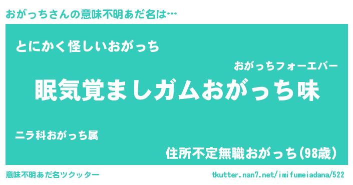 | 男性向けラノベタイトル風あだ名 | 『ノーゲーム・ノーオガッチ』 |