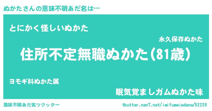 | ポケモン風あだ名 | 『ヌーカイ』『ヒヌカタ』『ゼニヌカ』 |