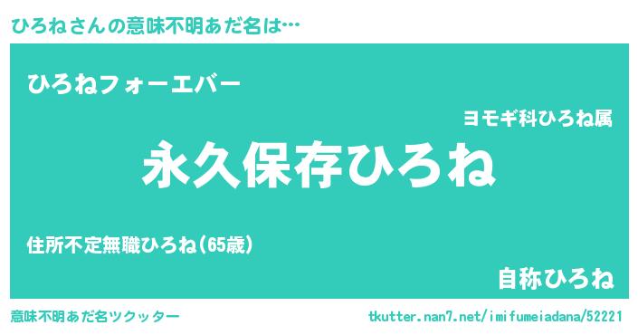| 男性向けラノベタイトル風あだ名 | 『ひろねという概念が存在しない退屈な世界 』 |