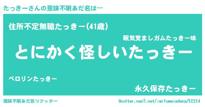| 男性向けラノベタイトル風あだ名 | 『たっきーの嫁は女の子じゃないと思った?』 |