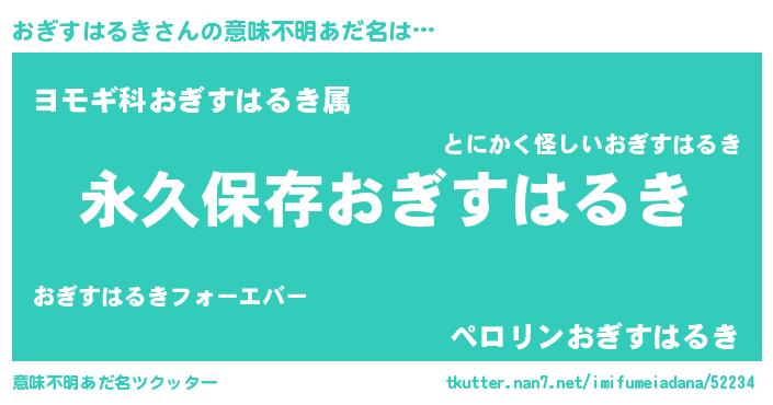 | 伝説のあだ名 | 『古より伝わる吟遊詩人おぎすはるき』 |