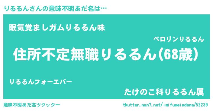 | 男性向けラノベタイトル風あだ名 | 『魔弾の王とりるるん』 |